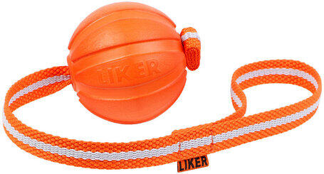 A narancssárga, fényvisszaverő szalagos Liker kutyalabda főbb tulajdonságai közzé tartozik, hogy tartós, könnyű, biztonságos a fogaknak és az ínynek, úszik a vízen és minden körülmények között észrevehető. Különböző méretben kapható, 5, 7 és 9 cm-es méretben. Színe narancssárga. Szalag hossza 30 cm (fogóval együtt). Kapható szalag nélküli változatban is.