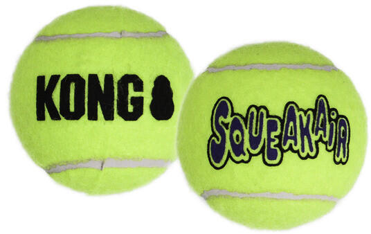 KONG SqueakAir Balls Teniszladba Kutyajáték 3 db M SqueakAir Balls Teniszladba M (3db) Tökéletes játékszer a visszahozós játékokhoz. A KONG Squeakair Ball két klasszikus kutyajáték — a teniszlabda és a sípoló játék — ötvözeteként tökéletes visszahozós játék. A játék teniszlabda kivitelben, integrált sípolóval, játékimádó és sportos kutyáknak, speciális filc