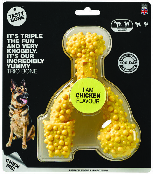 Háromszoros szórakozás. Hihetetlenül finom trió kocka. Akárcsak minden TastyBone nylon finomság, ezt is tesztelték a legenergikusabb ínyenceken. A kocka nagy kutyák számára megfelelő és változatos rágási örömöt garantál. 100% nylonból készült, hogy kielégítse a legnagyobb rágókat is. A kocka kielégíti a természetes rágási és játék igényt. A kockák egyedüláll