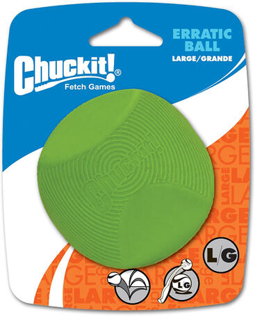 Különleges labda, mely speciális formájának köszönhetően kiszámíthatatlanul ér földet és pattan tovább. Igazi móka és nagyszerű játék kutyának és gazdának egyaránt. A labda könnyű, nem tömör és nagyszerűen pattog. A klasszikus teniszlabdával ellentétben nem koptatja a fogakat! Az M-es (Medium) Chuckit! labda átmérője kb. 6 cm, egy klasszikus teniszlabda méreténe