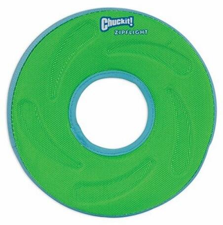 Chuckit! Zipflight kétéltű kutyafrizbi formájának és kidolgozásának köszönhetően, könnyen magasra és távolra dobható a vízben. Magas peremének köszönhetően sokkal jobban látszódik a kutya számára úszás közben, főleg, ha hullámzó vízben úszik a kutya. Megerősített gumi pereme nem koptatják a fogakat, a játékot viszont strapabíróvá és hosszú életűvé teszi