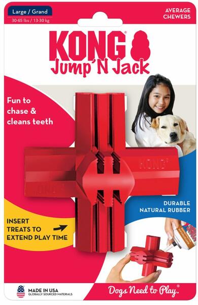 A Kong Dental Jump'N Jack egy szórakoztató ugráló fogászati játék egyedi kialakítással, amely kiválóan alkalmas harapásra. A Denta-Ridge segít megtisztítani a fogakat és az ínyeket, és a KONG Easy Treat pasztával tölthető meg Mérete : 11,5 x 11,5 cm13-30 kg súlyú kutyáknak