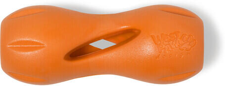 A West Paw díjnyertes játékát, a Qwizl-t brilliáns módon úgy tervezték, hogy sokáig megőrizze a drága jutalomfalatokat és hosszú időre lekösse a kutyusokat. Belső kialakítása a különböző méretű jutalomfalatokhoz lett igazítva, míg a játék oldalára elhelyezett nyílásokon keresztül áradnak az ínycsiklandó illatok és lehetővé teszik a finom falatok kóstolgatás