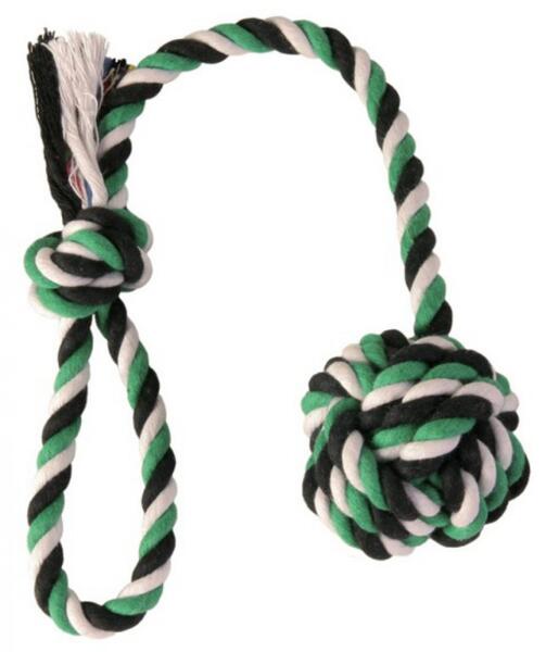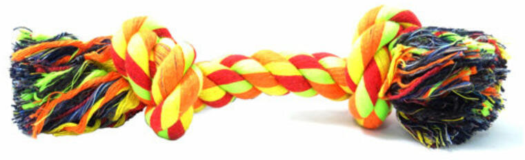 Színes pamut kötél kutyajáték 2 csomóval. kb. 45cm, 300G Többféle színben. A fényképen szereplőtől eltérő színű is lehet.