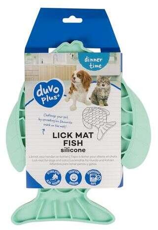DUVO+ Nyalogató tálca kutyáknak és macskáknak hal formában 23,5x18,5x0,8cm zöld
