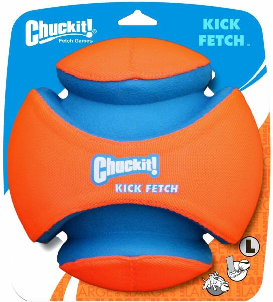 A Chuckit! Kick Fetch labda igazi fociélmény kutyáknak és gazdiknak. A nagy méretű labda kifejezetten úgy lett kialakítva, hogy a kutya könnyen és biztonságosan a szájába vehesse és hordozhassa. Ez a sima felületű, nagy labdák esetében lehetetlen anélkül, hogy a kutya kilyukassza vagy összenyomja a játékot. A Chuckit! Kick Fetch labdának nemcsak a kiképzése különleges,
