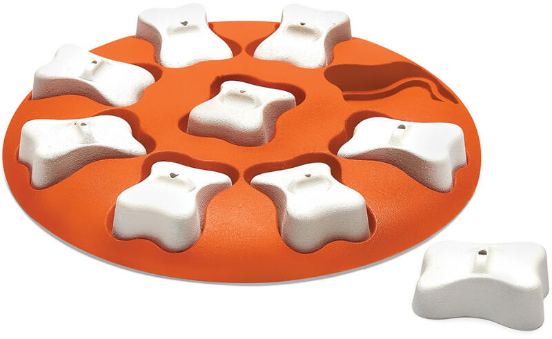 Szereti kedvenced a feladatokat? És a jutalomfalatokat? Ha a válasz mindkét kérdésre igen, ezt a kutyajátékot neki találták ki! :) Hogyan kell játszani? Tegyél jutalomfalatot a rekeszekbe, majd fedd le azokat a rekeszekbe passzoló csontokkal. Minél több rekesz van lefedve, annál nehezebb lesz a játék. Mutasd meg kutyádnak, hogy mit rejtenek a csontok, hogy felkeltsd az érdeklőd