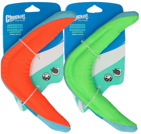Chuckit kétéltű bumeráng A bumerángot úgy tervezték, hogy magasan repüljön a levegőben, és vízen lebegjen a kivételes láthatóság érdekében. A puha, de strapabíró anyag jól simítja a kutya száját. Könnyen tisztítható egy játékkal teli nap után. Ön és kutyája több órányi játékot élvezhet ezzel a bumeránggal. A színek vegyesen kaphatók (zöld vagy narancssár