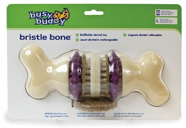 Kiváló fogápoló játék finom jutalommal az ínyncek számára. A Bristle Bone kiváló ellenszere lehet az unalomnak a kölyökkutyák, de akár az idősebb kutyusok számára is! Ön a csont alakú játékot szétcsavarhatja, és nyersbőrből készült finom rágókorongokat helyezhet bele. A sörtéknek és a rákókorongok közötti ellenálló guminak köszönhetően a kutyusának a foga