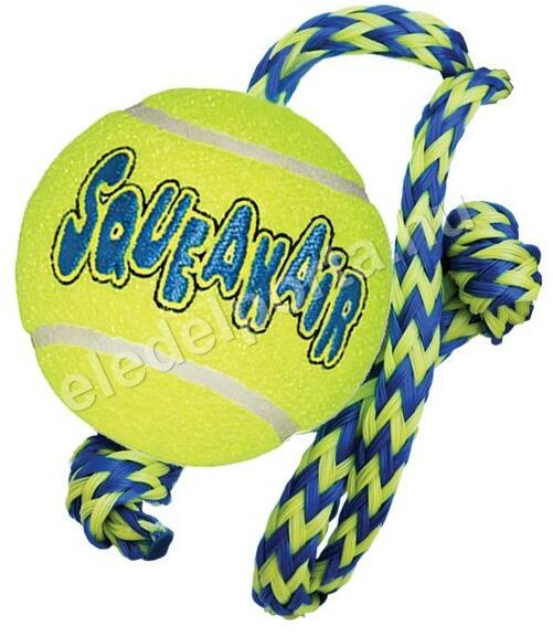 A KONG AirDog Squeakair Ball with Rope két klasszikus kutyajáték — a teniszlabda és a sípoló játék, illetve egy erős kötél — ötvözeteként tökéletes visszahozós játék. A tartós, kiváló minőségű AirDog Squeakair Ball nem koptatja a kutyája fogát. A normál teniszlabdák dörzsölő hatásával szemben ez a labda speciálisan dörzsmentes kivitelű. Tökéletes játéks