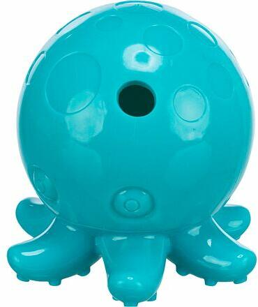 Snack Octopus - nyolckarú polip, TPR, 11 cm, a csápokon lévő barázdát úgy tervezték, hogy például májpástétommal töltsék mega polip fejét meg lehet tölteni csemegékkel vagy pelletekkel anyag: hőre lágyuló gumi (TPR) méretek: 11 cm szín: kerozin