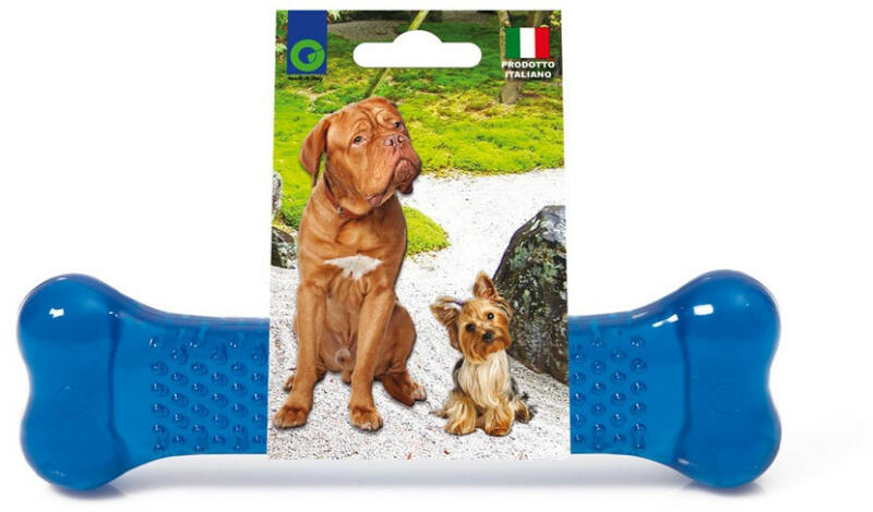 Trixie Játék Hűsítő Gumi Csont 11cm A Trixie Hűsítő Gumi Csont egy nagyszerű játék forró nyári napokon kutyák számára. Natúr gumiból készül, melynek köszönhetően puha és kíméletes az ínyhez és a fogakhoz. A csont belsejében víz van, ami lefagyasztva kellemes hűsölést biztosít a kutyának. A rágás során a víz fokozatosan távozik a csontból, így a kutya friss