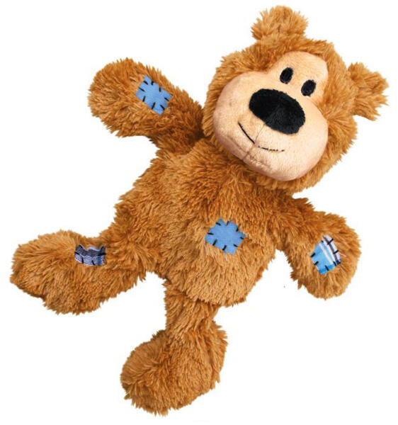 A Kong Knots Wild egy mackó alakú, tartós kötelekből készült nyikorgó játék kis kutyafajták számára. belül a játékban csomókkal összekötött kötelek vannak a játék felülete puha és rágnivaló, belül pedig tartós és erős nagyszerű interaktív játékokhoz, például kötélhúzáshoz a játék nyikorog a szórakozás kedvéért A kép illusztráció, színe változhat.