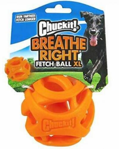 A Chuckit Breathe Right Fetch Ball egy olyan erős szerkezetű labda, melynek célja, hogy megkönnyítse a légzést és a légáramlást a kutya tüdejében játék közben. Ennek a labdának köszönhetően a kutya 30-50% -kal hosszabb ideig játszhat mivel a légzését nem gátolja a szájában hordozott labda. Üreges formájának köszönhetően a belsejét jutalom falatokkal is megtölthet