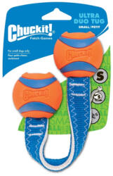 Dupla labda fogantyúval kötélen. Két erős teniszlabdából és egy tartós nylon szalagból áll, így könnyen eldobható. A megemelt, rugalmas gumi oldalak puhák a kutya szájához, és órákig tartó szórakozást, dobálást, húzást és játékot biztosítanak A Chuckit! Az Ultra Duo Tug több kutyával vagy kutyájával együtt is használható! Labdák mérete: 5cm