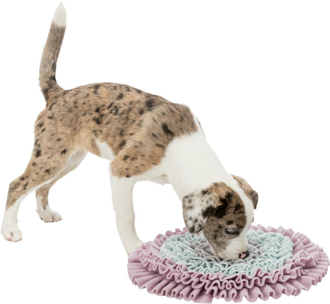 Szaglászó szórakozás a kölykök számára Vigyázz, kész – szimatolj! A kifejezetten kölyökkutyák és kölyökmacskák számára kifejlesztett Junior szimatszőnyeg játékos kihívásokat és ízletes meglepetéseket kínál. A stratégiai játék több réteg szövetből áll, amelyek sűrű szőnyeget alkotnak. Az egyes rétegek közé csemegéket rejthet, amelyeket kedvence mancsáv