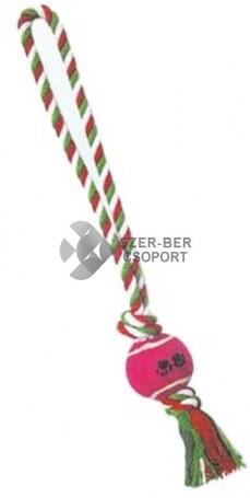 Strapabíró anyagokból készült játék kutyák számára. Az erős fonott kötél a rajta rögzített teniszlabdával számos szórakoztató módot kínál a játékhoz. Parittyaként elhajítható, vagy húzópróba játékra is használható. A termék véletlenszerű színekben érkezik.