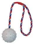 Trixie Natúrgumi hajítólabda Narancs kötélen – Natúr gumilabda rücskös felülettel, hurkos zsinórra fűzve, kutyáknak.
