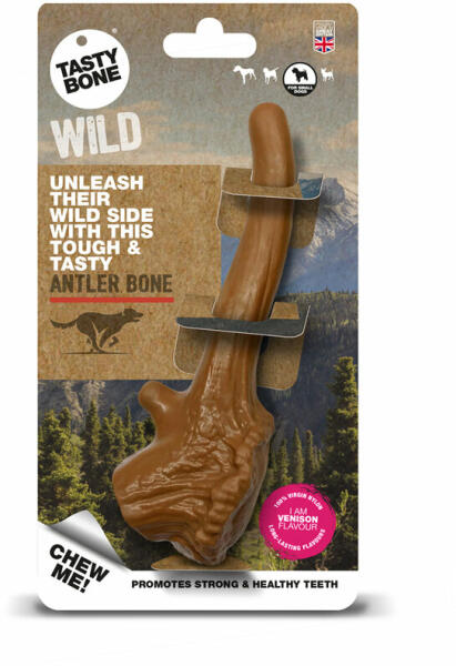A TastyBone Wild sorozat a természet által inspirált. A finom szarvasagancs alakú kocka kis kutyák számára megfelelő és változatos rágási örömet garantál. A kocka kielégíti a természetes rágási és játszási igényt. Gazdag egyedülálló, finom vad ízesítéssel töltve. Ez az íz az egész kocka élettartama alatt megmarad. Minden egyes harapással kutyája ínye és fogai