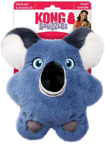 KONG Snuzzles Síposól Koala. Ez a cuki, barátságos játszótárs biztosan egy szempillantás alatt belopja magát kutyája szívébe! Ez bársonyosan puha koala kompakt formát kapot, így jól eldobható és vissza is hozható. A belsejében nagyméretű sípoló rejlik, ami minden egyes ráharapáskor hosszú ideig hallható hangot ad ki. A zörgő fólia gondoskodik a meglepetésről játé