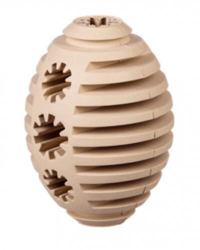 A Barry King rugby labda formájú játéka kiváló szórakozást nyújt kutyájának. A labda nyílásaiba jutalomfalatot kell elhelyezni, melyet a kutyának kell kiszedegetnia játék közben. Az extra strapabíró gumiból készült játék rágás közben kutyáink fogát is tisztítja. M -es méret: 10-11 cm.