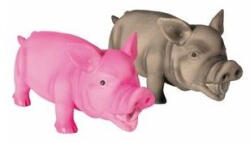 Nyomásra röfögő hangot ad ki. Malac alakú gumijáték. Strapabíró puha latex anyagból. A játék szétrágás és lenyelés estén sem okoz problémát, ennek ellenére csak felügyelet mellett adja oda kedvencének!