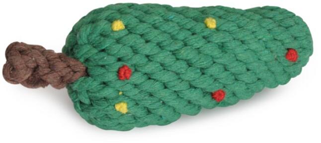 Pamut, fonott, karácsonyfa alakú köteles karácsonyi fogtisztító játék.