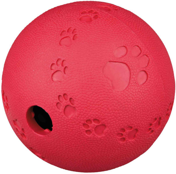 Természetes gumiból készült labda, kutyáknak. Jutalomfalatokkal feltölthető Extra szórakozás: Halkan gurul és pattog Méret: 7 cm (átmérő)