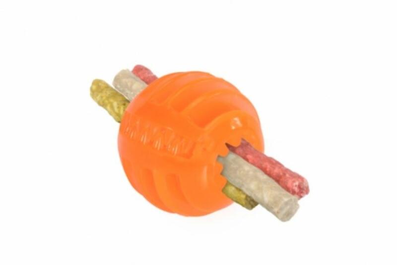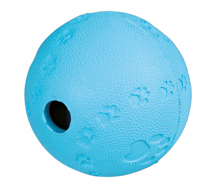 Természetes gumiból készült labda, kutyáknak. Jutalomfalatokkal feltölthető Extra szórakozás: Halkan gurul és pattog Méret: 7 cm (átmérő)