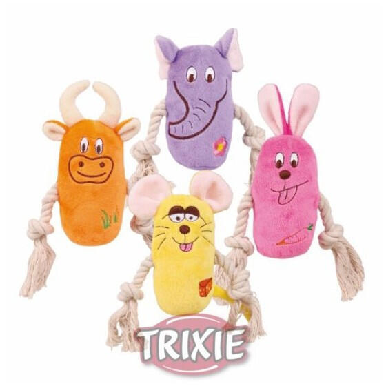 Trixie zsinóros állatfigurák - sípolós plüss játék kötélen. Méret: 13 cm
