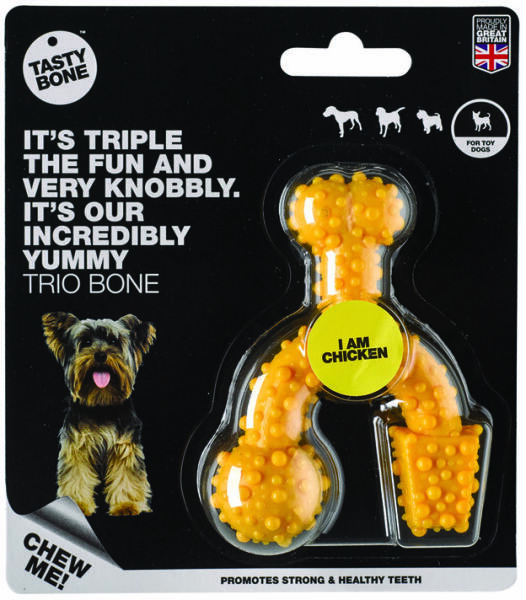 Háromszoros szórakozás. Elképesztően finom trio kocka. Akárcsak minden TastyBone nylon csemege, ezt is a legenergikusabb falánkokon tesztelték. A kocka extra kis kutyák számára megfelelő és változatos rágási örömöt garantál. 100% nylonból készült, hogy kielégítse még a legnagyobb rágókat is. A kocka kielégíti a természetes rágási és játékigényt. A kockák egyed
