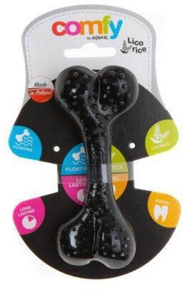 Comfy Licorice Dental Bone - fogtisztítós játék (csont) kutyák részére (16,5x7x4cm) -édesgyökér ízesítéssel - fekete - nagyon tartós, a fogak és az íny higiéniájára szolgáló kiemelkedésekkel rendelkezik.