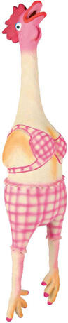 Trixie fürdőruhás csirkefigura kutyáknak. Ez a kutyajáték nyomásra sípoló hangot ad ki, így fenntartja a kutya érdeklődését. Hossza 48 cm, anyaga latex, ami a kutya számára biztonságos.