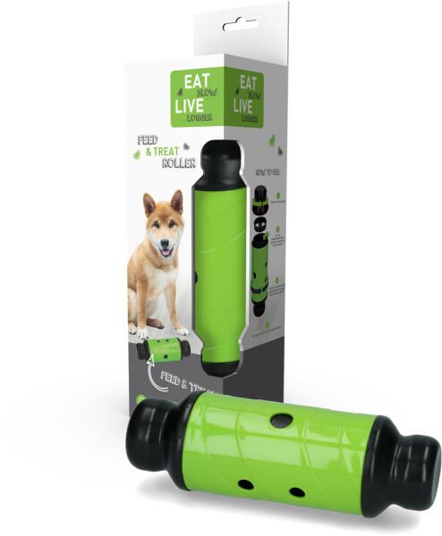 Az Eat Slow Live Longer Feed & Treat Roller henger biztosítja, hogy kedvence játékos módon, falás nélkül kapja meg az ételét. Egyedülálló módon tarthatja kedvencét mozgásban, és megakadályozhatja az unalmat és a túlsúlyt. Az Eat Slow Live Longer Feed & Treat görgővel az Ön kedvence jobban rág, ami pozitív hatással van az egészségre és a fogakra. Mérete: 16.5 x