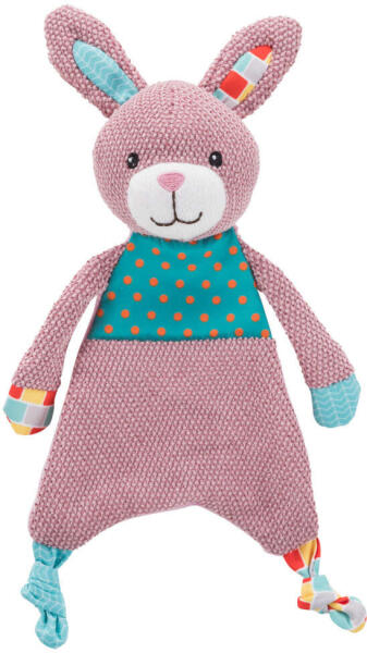 Trixie Junior nyuszit formázó kutyajáték kölyköknek. Harapásra hangot ad ki és csördő-zörgő fólia ís van benne, így sokáig izgalmas kutyádnak. Anyaga szövet és plüss (poliészter).