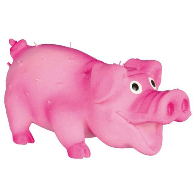 Pig (17cm)Ez a kutyajáték hosszú órákig leköti a kutyát. Az elnyűhetetlen, latex játék poliészterrel van kitöltve, a kutyának nem okoz nehézséget megragadni és összepréselni. A sípolója röfögő hangot hallat, amely a játékot való- és életszerűbbé teszi. méretének köszönhetően a Trixie röfögő, latex játékmalac ideális a közepes termetű kutyák számára, m