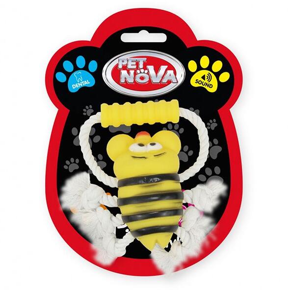 Méhecske alakú húzogatós játék zsinóron, sípoló hangot ad ki. A játék hossza zsinórral: 26cm A méhecske mérete: 12,5cm