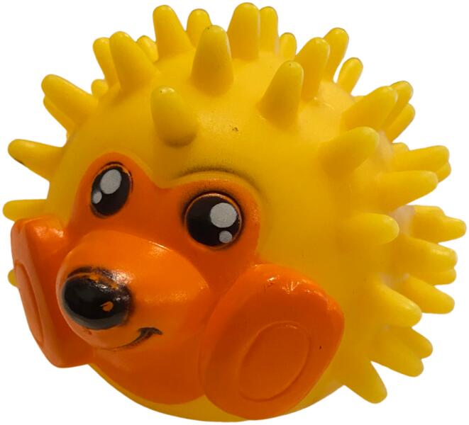 Rágható gumi anyagból készült 8 centiméteres átmérőjű sündisznó formájú csipogó labda, kutyáknak. Tökéletes visszahozós játékokhoz, vagy a kutya lekötésére, ha a gazdinak nincs ideje hosszasan eljátszani. Rágcsálóknak is tökéletes választás!
