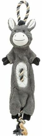 Plüss szamár beépített kötéllel, 66 cm, szürke, kutyajáték hanggal egy rögzített kötél belsejében anyaga: plüss/kötél (poliészter, pamut) méret: 66 cm szín: szürke/fehér