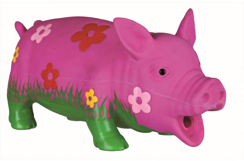 Pig (20cm) Trixie kiváló minőségű, poliészter gyapjú tömésű, színes, virág mintás malac latexből kutyáknak. atex poliészter gyapjú töltelékMéretek: 20 cm
