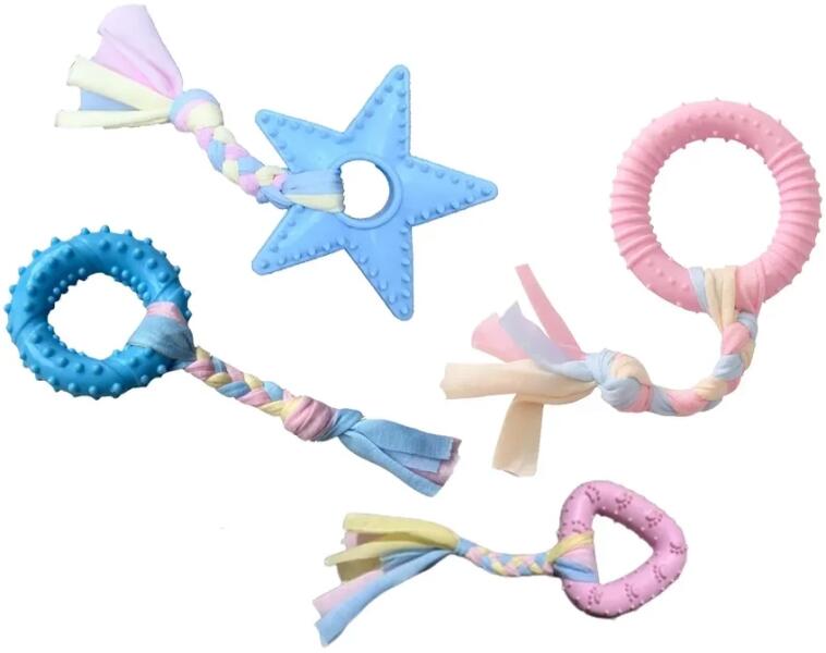 Kutyarágó játék gumiból 22cm Kicsi és közepes méretű kutyafajták számára kifejlesztett játék minden korosztály számára. Segít fenntartani a kutya szájhigiéniáját , mivel a pamutszálak játék közben tisztítják a fogakat és masszírozzák az ínyt . Tökéletes rángatózás és rágás az otthoni időtöltéshez, amíg várakozik. Tartalmazza a következőket: 1x kutyaj