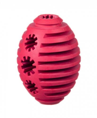 A Barry King rugby labda formájú játéka kiváló szórakozást nyújt kutyájának. A labda nyílásaiba jutalomfalatot kell elhelyezni, melyet a kutyának kell kiszedegetnia játék közben. Az extra strapabíró gumiból készült játék rágás közben kutyáink fogát is tisztítja. L -es méret: 12-13 cm.
