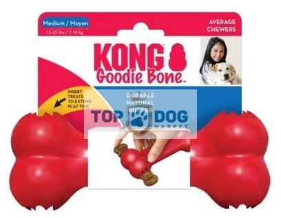 Kong Goodie Bone Strapabíró rágócsont nagy rágásigényű kutyáknak A Kong Goodie Bone egy tartós, természetes piros gumi formulából készült, kifejezetten az elszántan rágó kutyák számára. A KONG Goodie Bone nem csupán egy rágócsont, hanem egy rendkívül erős, snackkel tölthető kutyajáték. Natúr gumiból készült, ideális megrágásra és apportírozásra, kielégíti