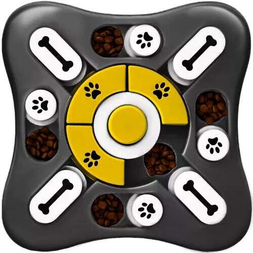Fejleszti a koncentrációt és a precizitást - Ez a játék tökéletes választás, ha szeretnéd, hogy kutyusod okosabb és ügyesebb legyen. A különböző rekeszekben elrejtett finomságok megtalálása nem csak a szaglását teszi próbára, hanem a türelmét és ügyességét is. A középső rész 360 fokban forgatható, így minden alkalommal új kihívást jelent a kis hős számára.