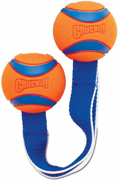 Madzagos labda, 2 labdával. Kiváló játékszer, lehet dobálni, illetve húzgálni. A madzag segítségével könnyen eldobható. A madzag miatt nem szükséges megfogni a labdát, így nem lesz piszkos a kezed játék közben. A kötél 2 végén az eredeti CHUCKIT Ultra labda van. Kiválóan használható húzogatós játékként is, de dobálni is lehet. A labdák mérete: közepes (M) ø 6