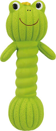 A Trixie zöld békás puha latex gumicsont kutyáknak nyomásra, harapásra hangot ad ki, ami fenntartja a kutya érdeklődését. A játék mérete 18 cm.