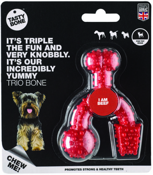 Háromszoros szórakozás. Elképesztően finom trio kocka. Akárcsak minden TastyBone nylon csemege, ezt is a legenergikusabb falánkokon tesztelték. A kocka extra kis kutyák számára megfelelő és változatos rágási örömöt garantál. 100% nylonból készült, hogy kielégítse még a legnagyobb rágókat is. A kocka kielégíti a természetes rágási és játékigényt. A kockák egyed