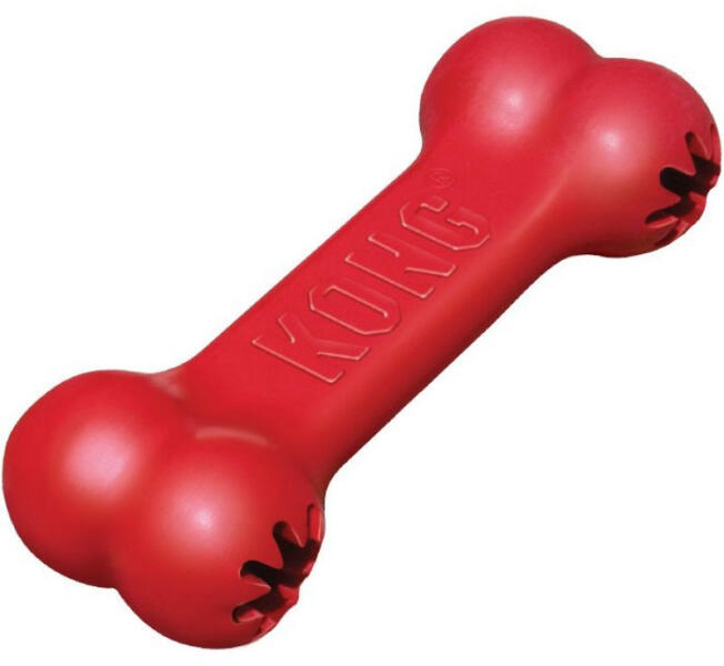 Kong Goodie Bone Strapabíró rágócsont nagy rágásigényű kutyáknak A Kong Goodie Bone egy tartós, természetes piros gumi formulából készült, kifejezetten az elszántan rágó kutyák számára. A KONG Goodie Bone nem csupán egy rágócsont, hanem egy rendkívül erős, snackkel tölthető kutyajáték. Natúr gumiból készült, ideális megrágásra és apportírozásra, kielégíti