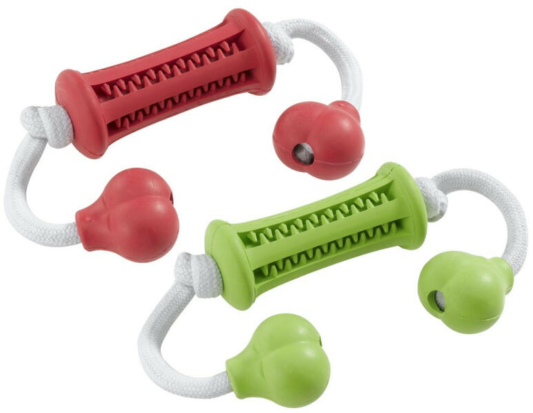 Kutyajáték Ferplast játék kutyáknak, fogtisztító naturgumi henger rágókötéllel. Fog tisztító játék. A fotó illusztráció, a termék színe eltérő lehet. Magasság 4cm Hosszúság 36cm Szélesség 4cm