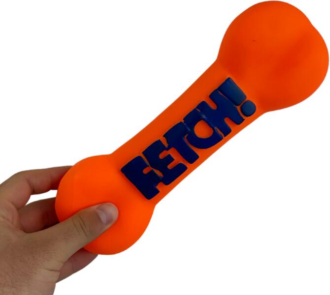 Termékjellemzők: Típus : Rágható gumi csont Méret : 24 cm hosszúság Szín : Narancssárga Anyag : Rugalmas, tartós gumi Tulajdonságok : Beépített sípolóval rendelkezik Leírás: Ez a FETCH márka által kínált rágható gumi csont ideális méret és kialakítás, amely megfelel a legtöbb kutya szórakozási és rágási igényeinek. A játék 24 cm hosszú, és élénk lila szín